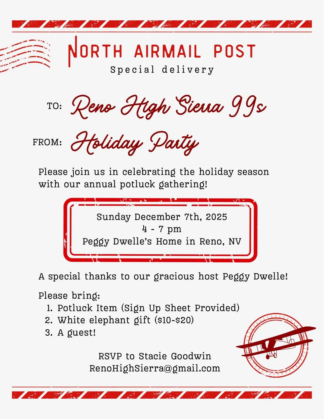 We’re meeting at 6:30 PM on January 9th, at Atlantic Aviation at 655 S Rock Blvd, Reno, NV 89502.